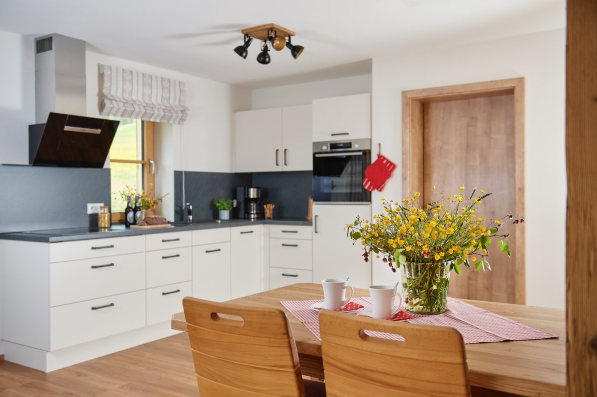 Das etwas kleinere Almenhöfle ist unser zweites Haus und befindet sich direkt gegenüber. Auch im „Höfle“ werden unsere Gäste mit angenehmem Komfort empfangen. Die vier Wohnungen, alle mit 4 Sternen, verfügen über eine Fläche von 40-100m², genau passend für Ihren Bedarf. Wie im großen Almenhof verfügen die geschmackvoll eingerichteten Wohnungen ebenfalls über eine eigene Küche und großzügige Betten im Schlafbereich. Gemütliche Stühle und Sofas bieten zusätzliche Entspannung. Der Blick vom eigenen Balkon oder der eigenen Terrasse fällt auf die grüne Umgebung.