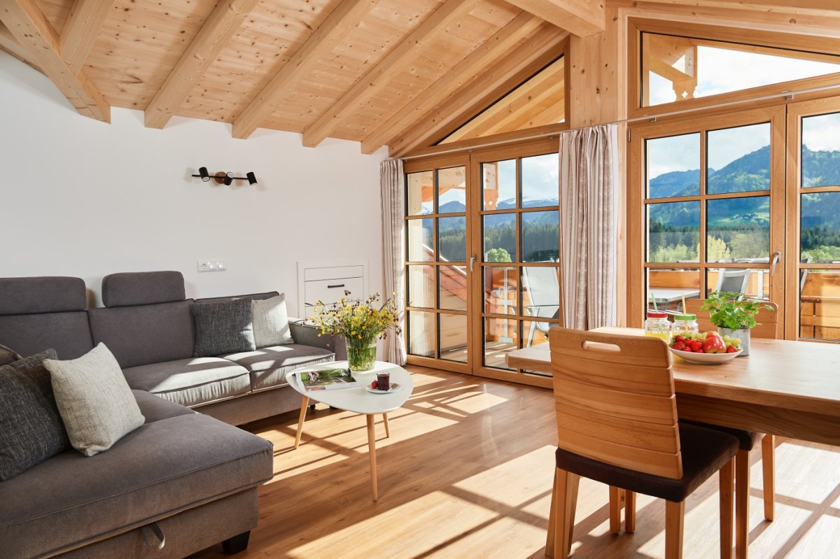Gemütlich, mit komplett ausgestatteten Küchen, einladenden Wohnräumen mit großen Doppelbalkontüren, Zirbenholzbetten, die zum Ausschlafen und Kuscheln einladen und Ihrer eigenen Infrarot-Wärmeliege, dazu die Nähe zu Oberstdorf und unzähligen Wander- und Radwegen…